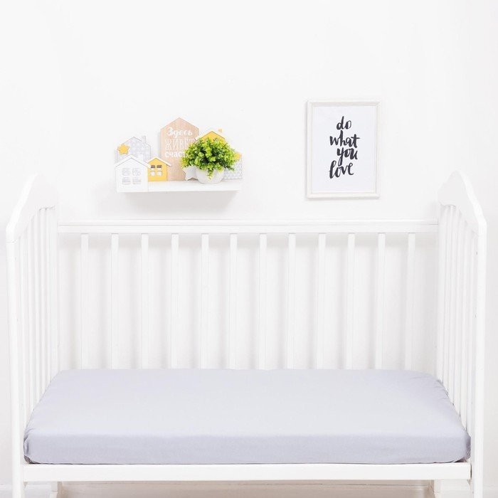 Простыня на резинке «Крошка Я», 60*120+20 см, серый