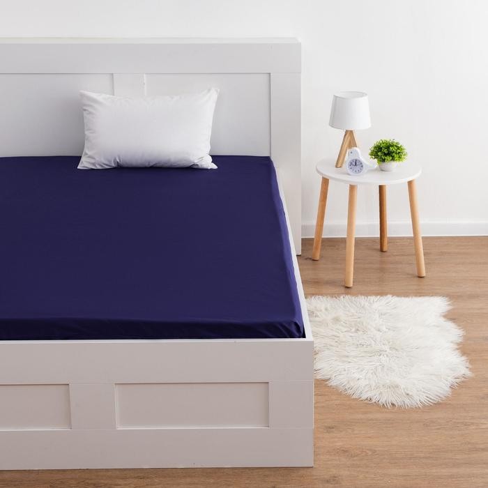 Простыня на резинке Этель 160*200*25 см, цв. темно-синий, 100% хлопок, мако-сатин, 128 г/м²