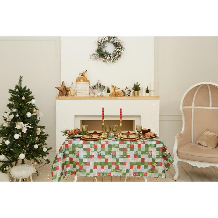 Скатерть Доляна «Новый год: Новогодняя мозаика» 145*300 +/- 2 см, 100% п/э