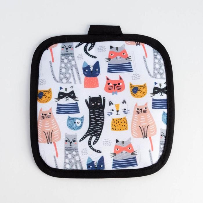 Кухонный набор Доляна «Котики» вид 2, прихватка 17*17см, рукавица 26*16см, фартук 60*80 см 100% п/э