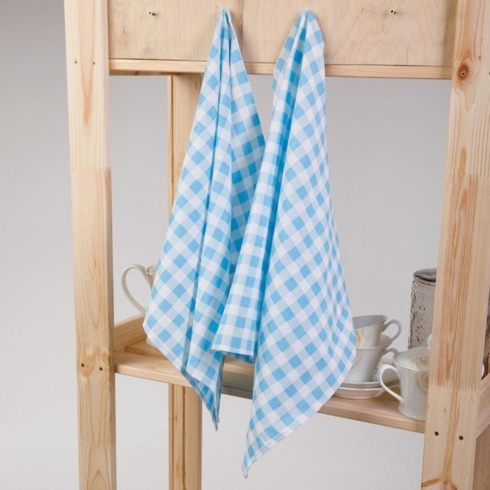 Полотенце рогожка «Клетка», размер 45×73 см, цвет голубой, хлопок 100%, 150г/м²