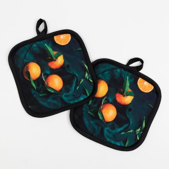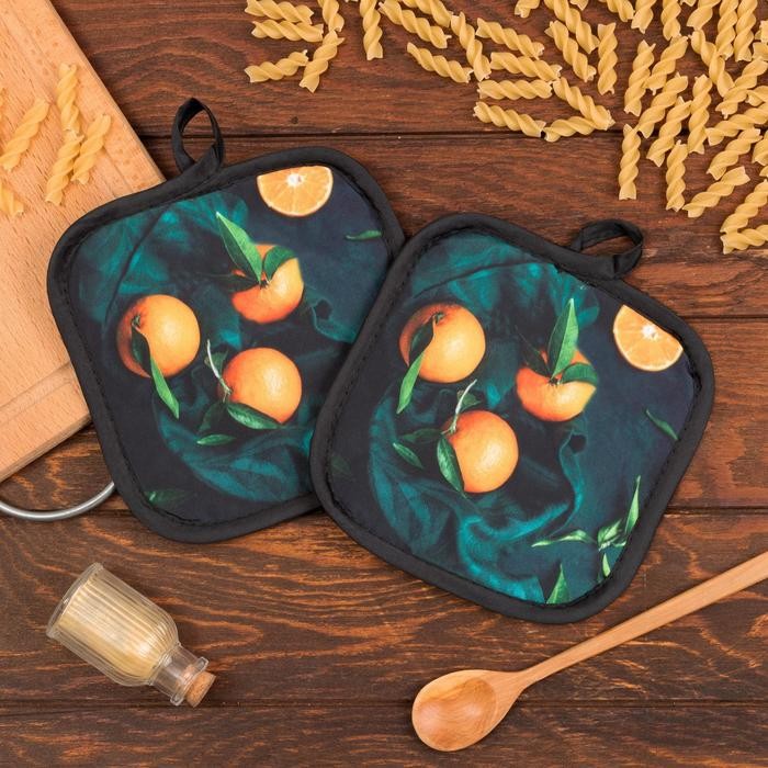 Кухонный набор Доляна «Апельсины» прихватка 17*17 см — 2 шт, 100% п/э