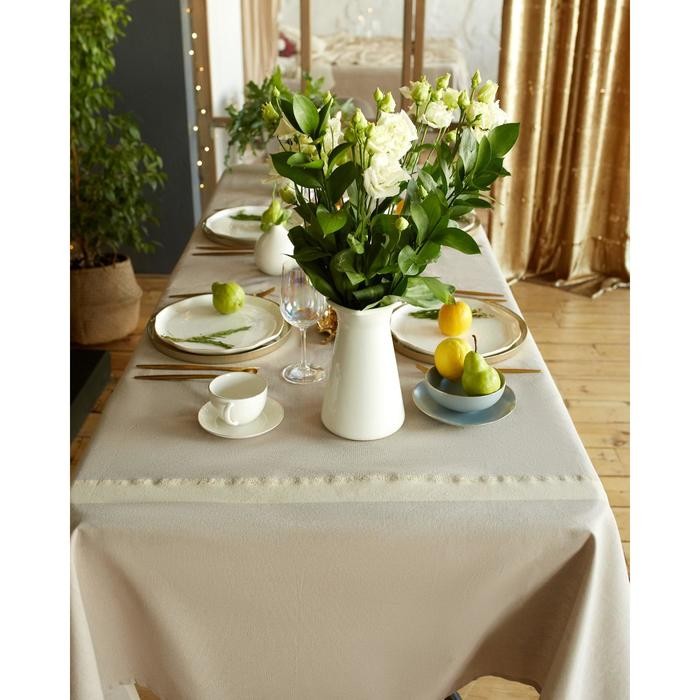 Скатерть «Этель» 110×165 см, цв. кофейный с золотой нитью, 100% хлопок, 163 г/м2