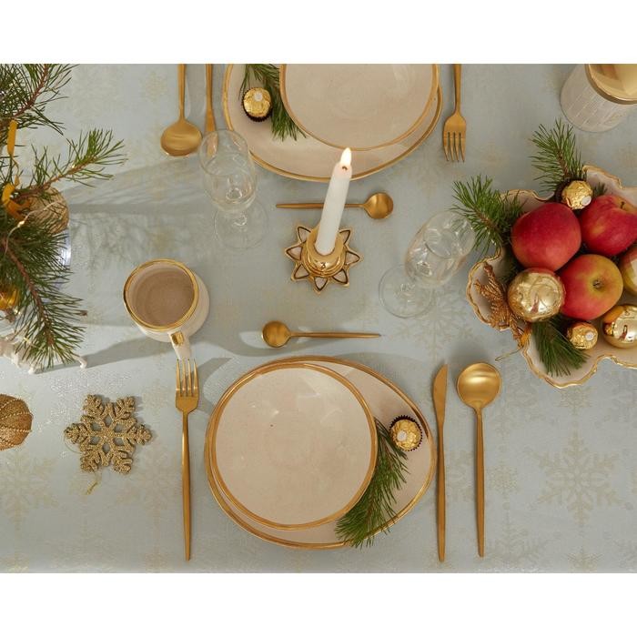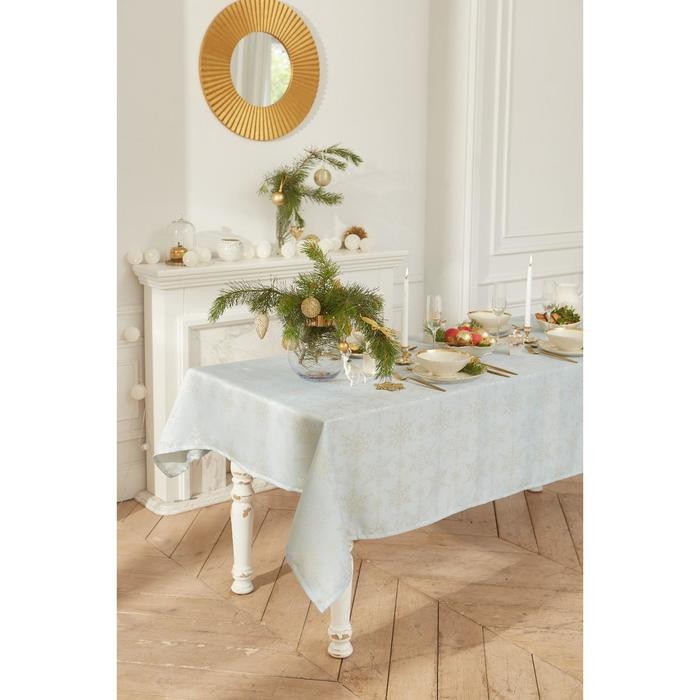 Скатерть Этель «Новый год: Снежинки» цвет голубой, 142*220 +/-3 см, 115 ±10 гр, 100% п/э