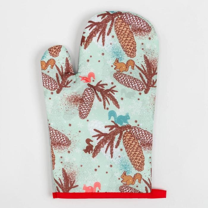 Кухонный новогодний набор Доляна«Шишки»,прихватка 17*17см,варежка 26*16см, фартук 60*80 см 100% п/э