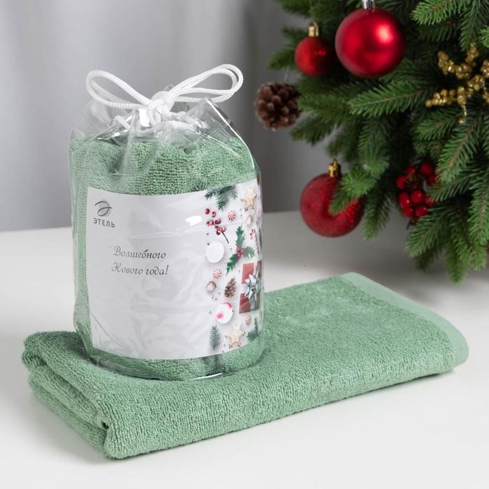 Полотенце подарочное Этель «Новый год: Волшебного года» цвет эвкалиптовый, 50х90см, 100% хл, 340 г/м2