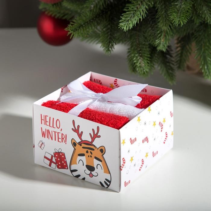 Новогодние полотенца (подарочный набор 3 шт.) Этель Hello winter 30×30 см, хлопок 340гр/м2