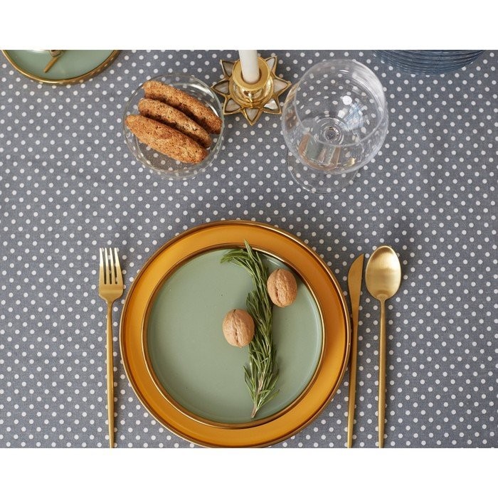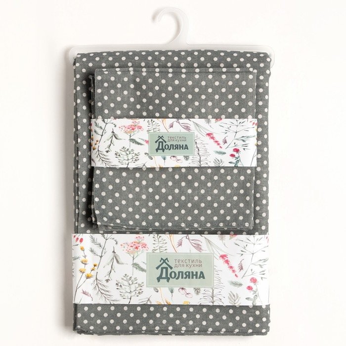 Набор Доляна скатерть 145х200см/салфетки 40х40см 4шт, Горох сер, 100%пэ, рогожка 200 гр/м
