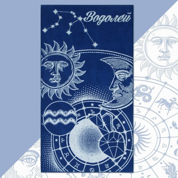 Полотенце махровое Этель «Знаки зодиака: Водолей» синий, 67×130 см, 100% хлопок, 420гр/м2