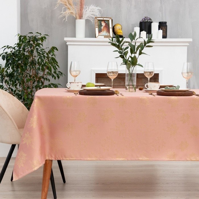 Скатерть Этель «Пуансеттия» цв.розовый, 142*110 +/-3 см, 115 ±10 гр,100% п/э