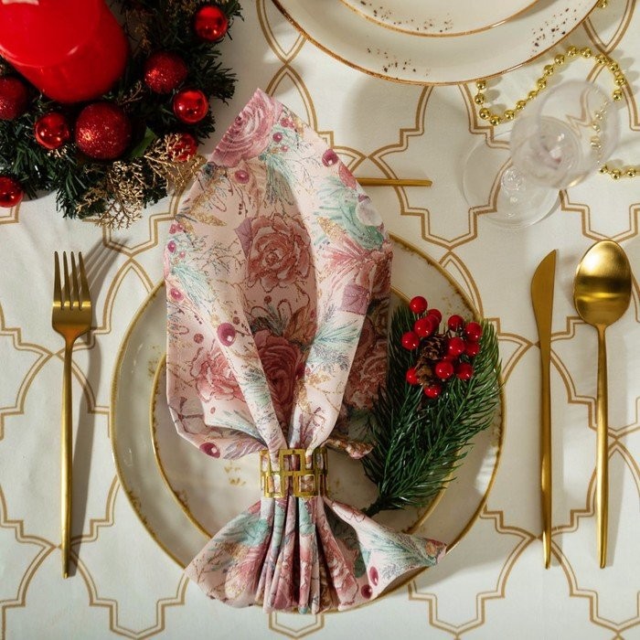 Набор новогодних салфеток Этель «Pink magic» 46×46 см — 4шт., 100%хл, саржа 190 г/м2