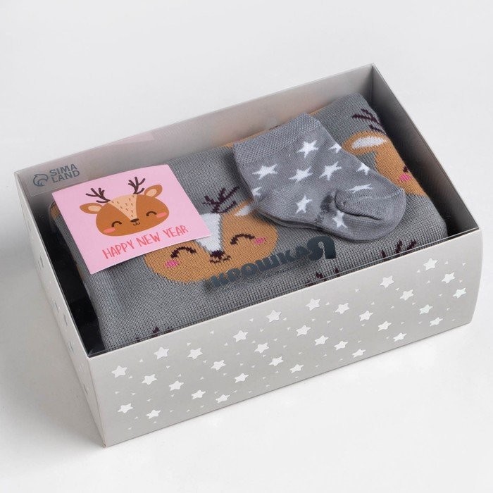 Подарочный набор Крошка Я «Олененок», плед 90х90см, носки 10−12 см