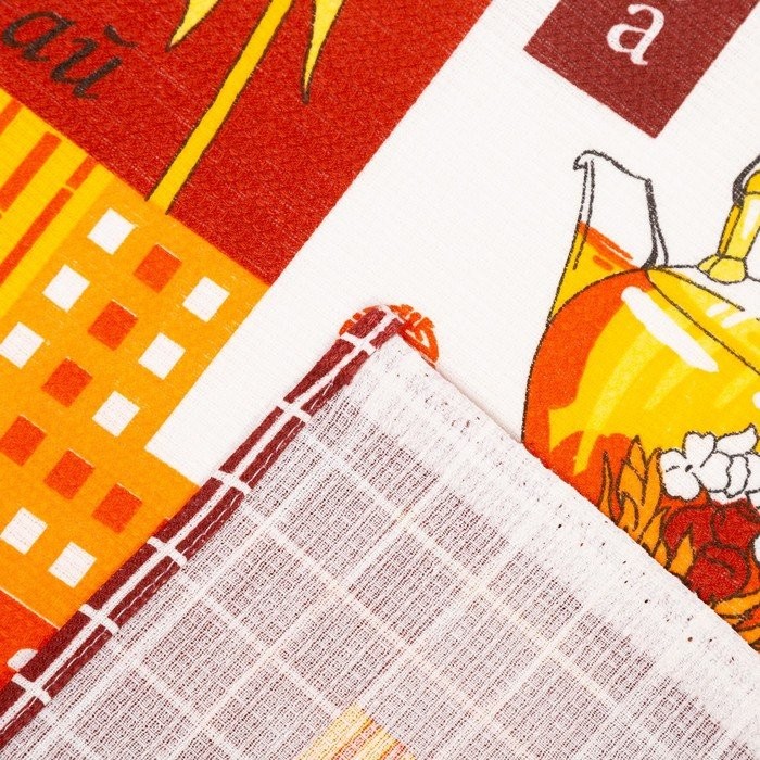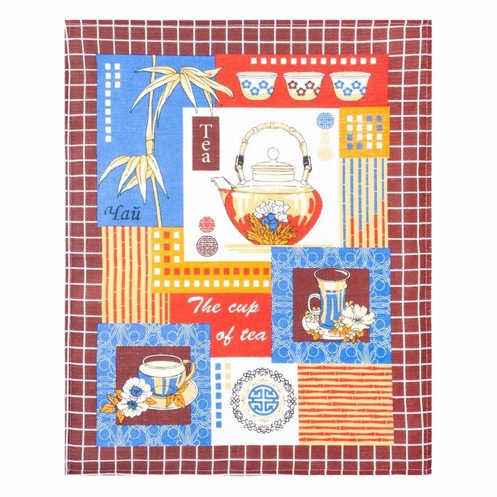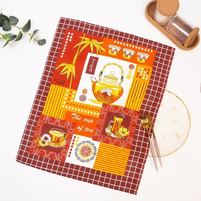 Полотенце 45×60 см, Чаепитие, коричневый, вафля, 160 гр/м2, хлопок 100%