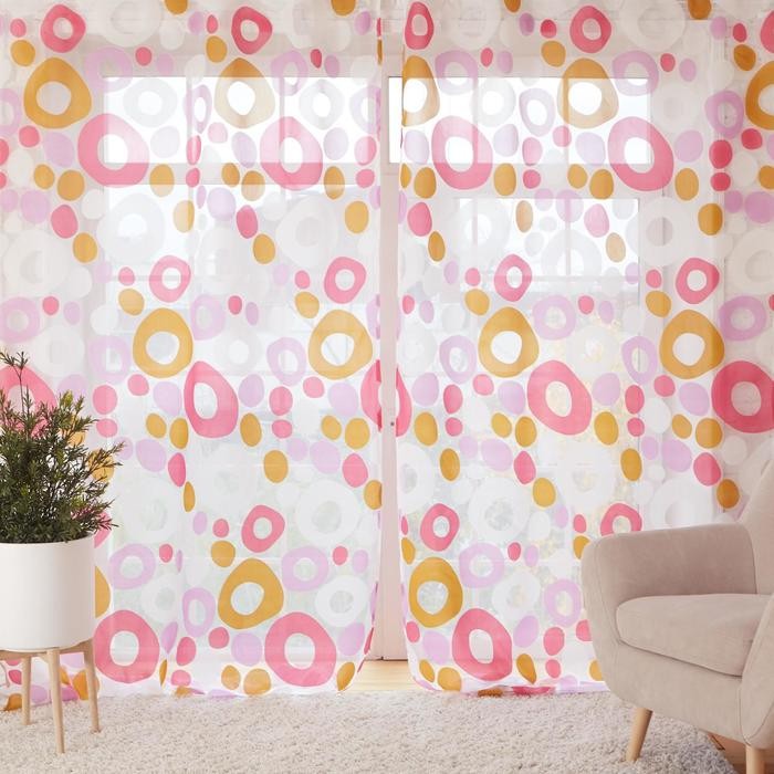 Тюль «Этель"Калейдоскоп (розовый) б/ утяжелителя, ширина 260 см, высота 250 см