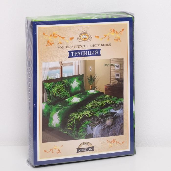Постельное бельё «Традиция: Водопад», евро, 200×217 см., 220×240 см., 70×70 см. — 2 шт., бязь 125 г/м, хлопок 100%
