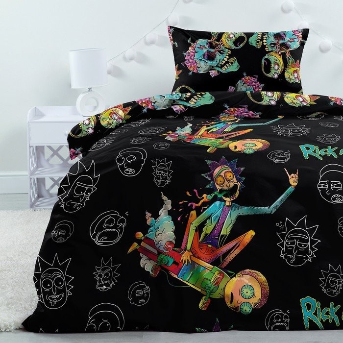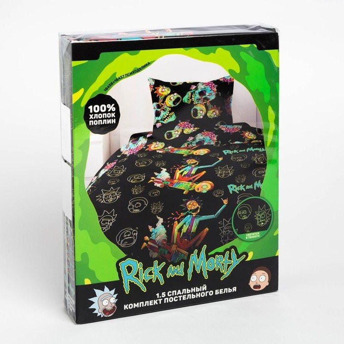 Постельное бельё 1.5сп Рик и Морти «Психоделика» 143×215, 150×214, 70×70−1шт, поплин 105г/м хл100%
