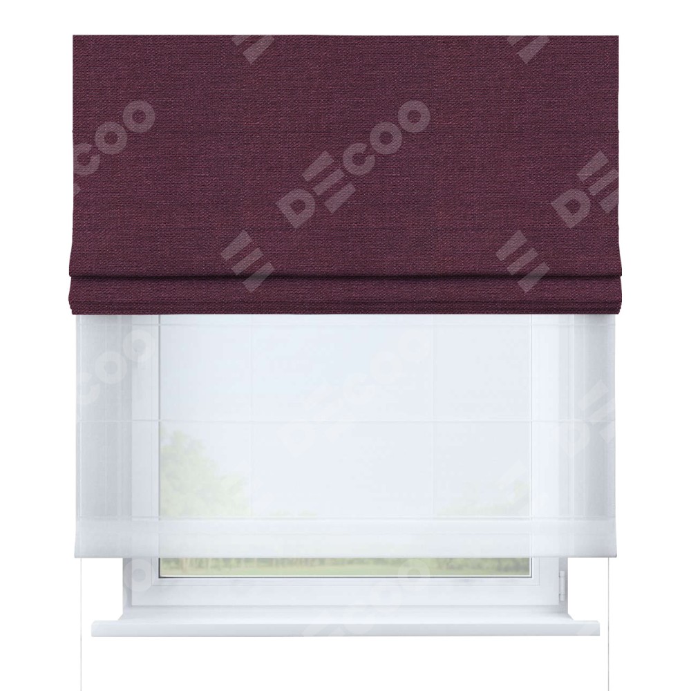 Римская штора день-ночь производителя «Cortin», используется для проёма, пошита из двух полотен, с лицевой стороны лён фиолетовый артикул 85907, вторая ткань тюль (по стандарту комплектуется тюль белого цвета артикул V-01). Имеет универсальный механизм и подходит для монтажа: на потолок, на стену и в нишу.