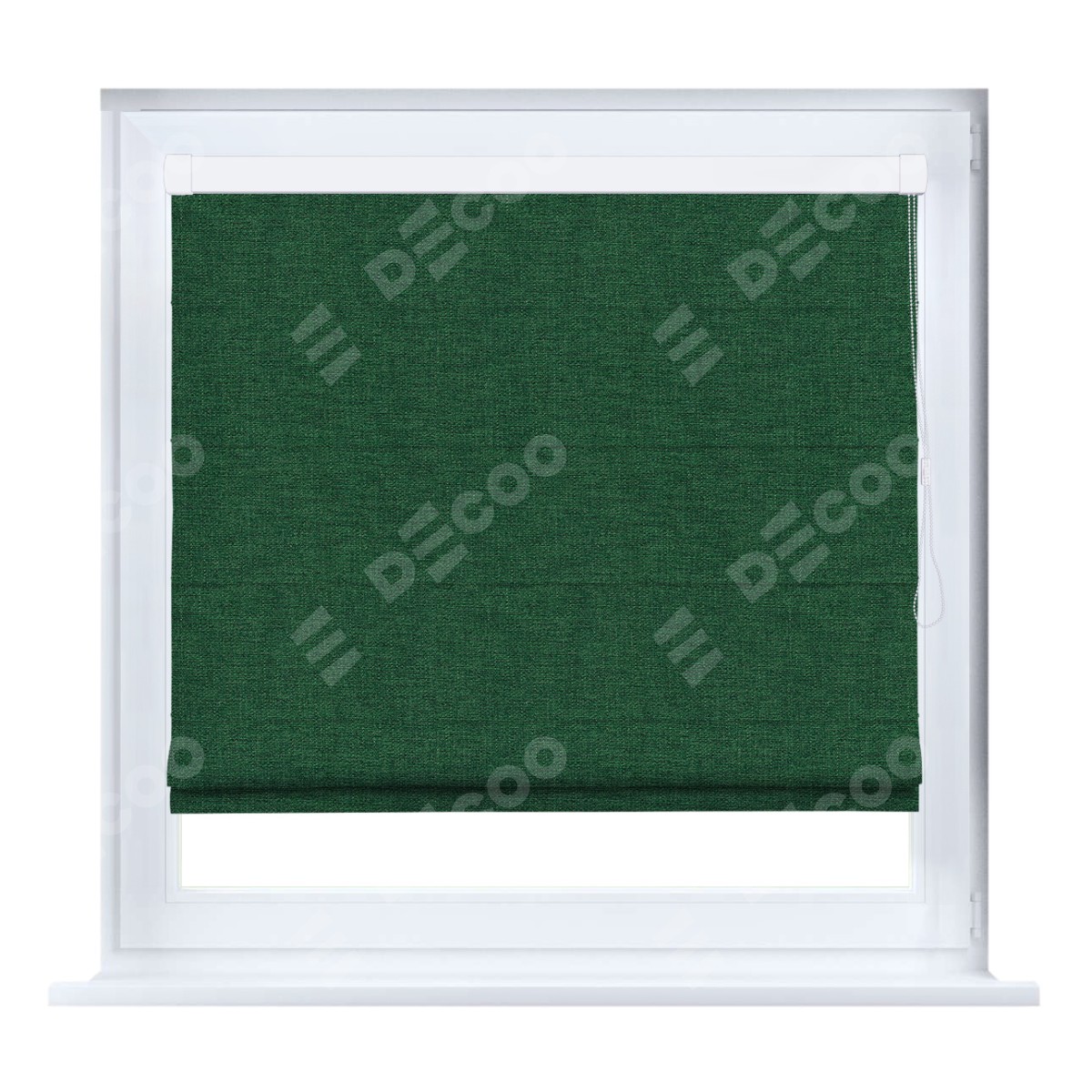 Римская штора кассетного типа, производителя «Cortin», устанавливается только на пластиковые окна и прилегает к стеклопакету, пошита из ткани лён серо-зелёный, артикул 63740.