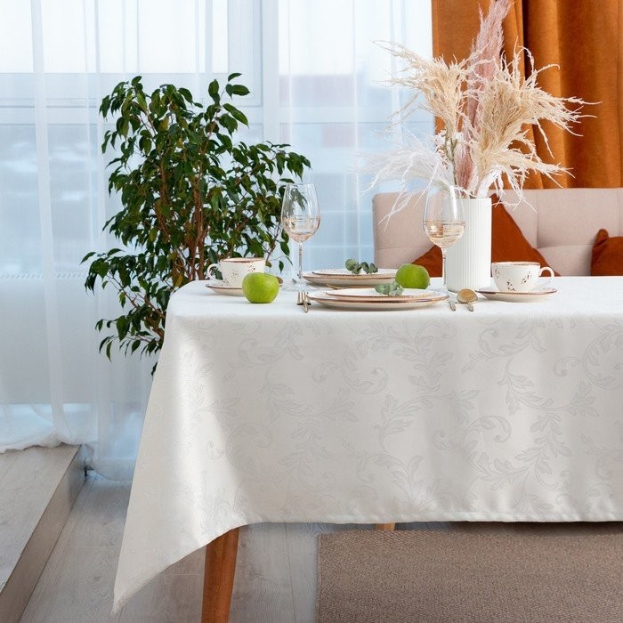 Скатерть Этель «White patterns» цвет белый, 142*220 +/-3 см, 115 ±10 гр,100% п/э