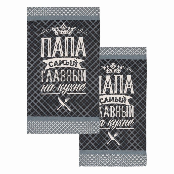 Набор кухонных полотенец Доляна «Папа главный на кухне» 35х60см-2шт, 100% хл