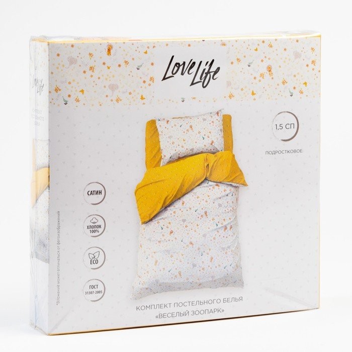 Постельное белье 1.5 сп «LoveLife» Веселый зоопарк, 143×215 см,150×214 см,50×70 см-1 шт. сатин