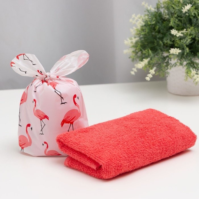 Полотенце в мешочке Экономь и Я «Фламинго» 30*60 см, 100% хлопок, 320 гр/м2