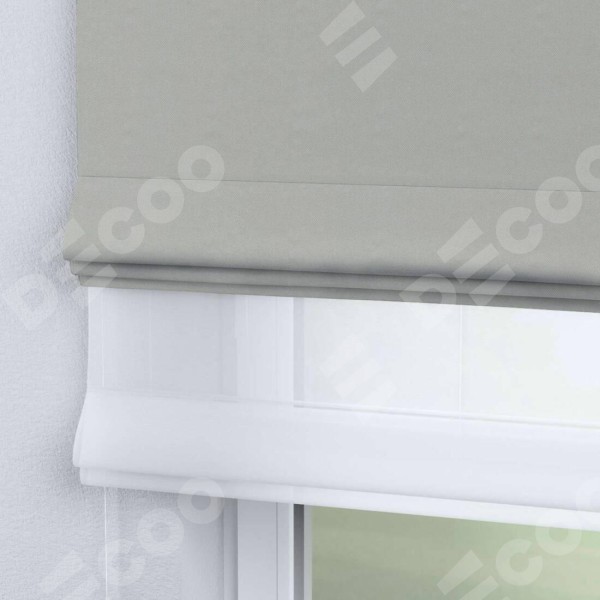 Римская штора день-ночь производителя «Cortin», используется для проёма, пошита из двух полотен, с лицевой стороны лён димаут светло-серый артикул 83025, вторая ткань тюль (по стандарту комплектуется тюль белого цвета артикул V-01). Имеет универсальный механизм и подходит для монтажа: на потолок, на стену и в нишу.