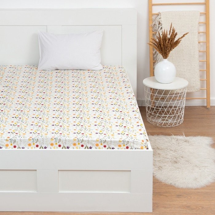 Простыня на резинке LoveLife 180*200*25см, «Цветочная поляна», 100% хлопок, сатин, 125г/м²