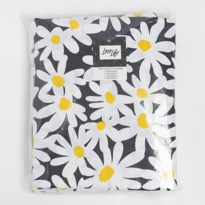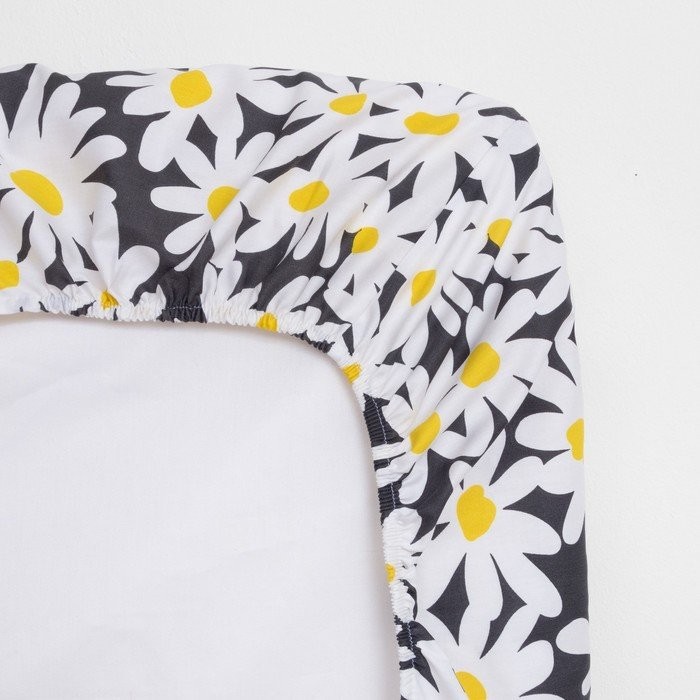 Простыня на резинке LoveLife 140*200*25см, «Ромашки», 100% хлопок, сатин, 125г/м²