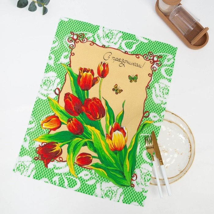 Полотенце 45×60 см, С праздником, салатовый, вафля, 160 гр/м2, хлопок 100%