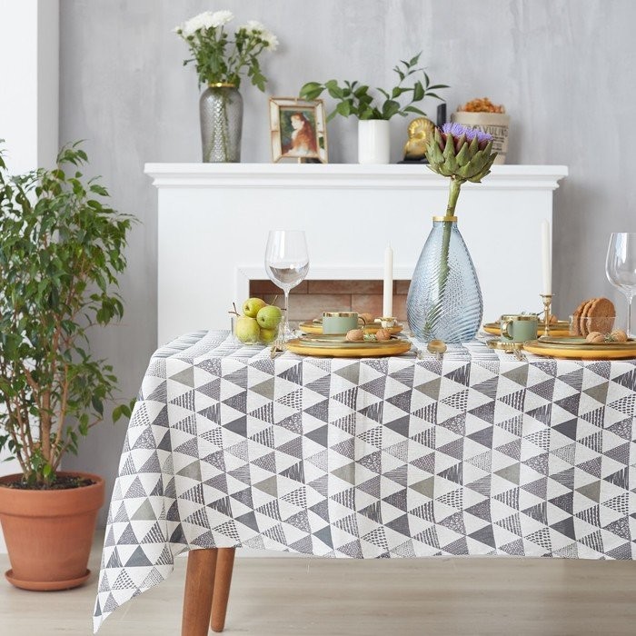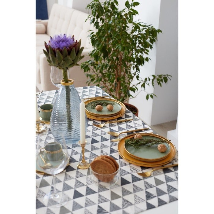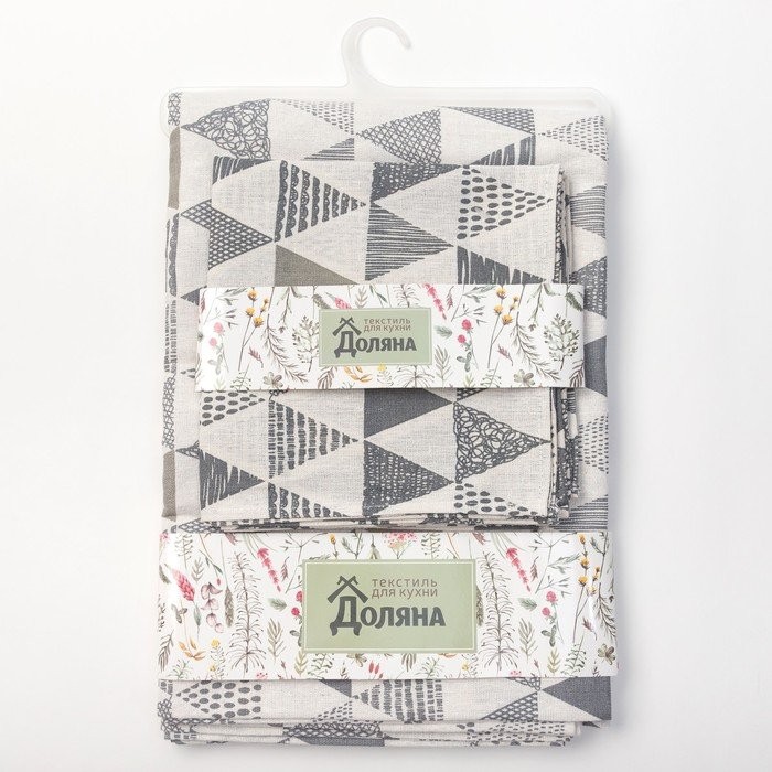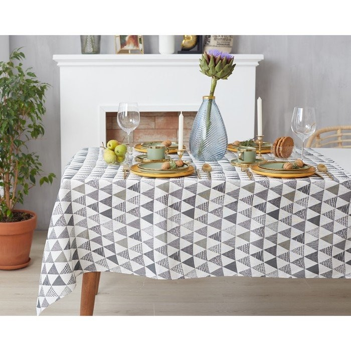 Набор Доляна скатерть 145х200см/салфетки 40х40см 4шт, Треугольники, 100%пэ, рогожка 200 гр/м
