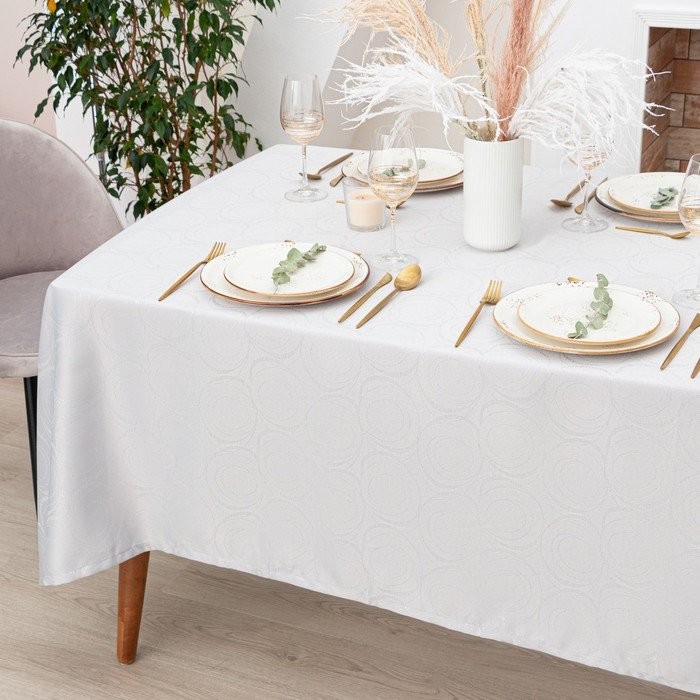 Скатерть Этель «Круги» цв.серебро, 142*110 +/-3 см, 115 ±10 гр,100% п/э