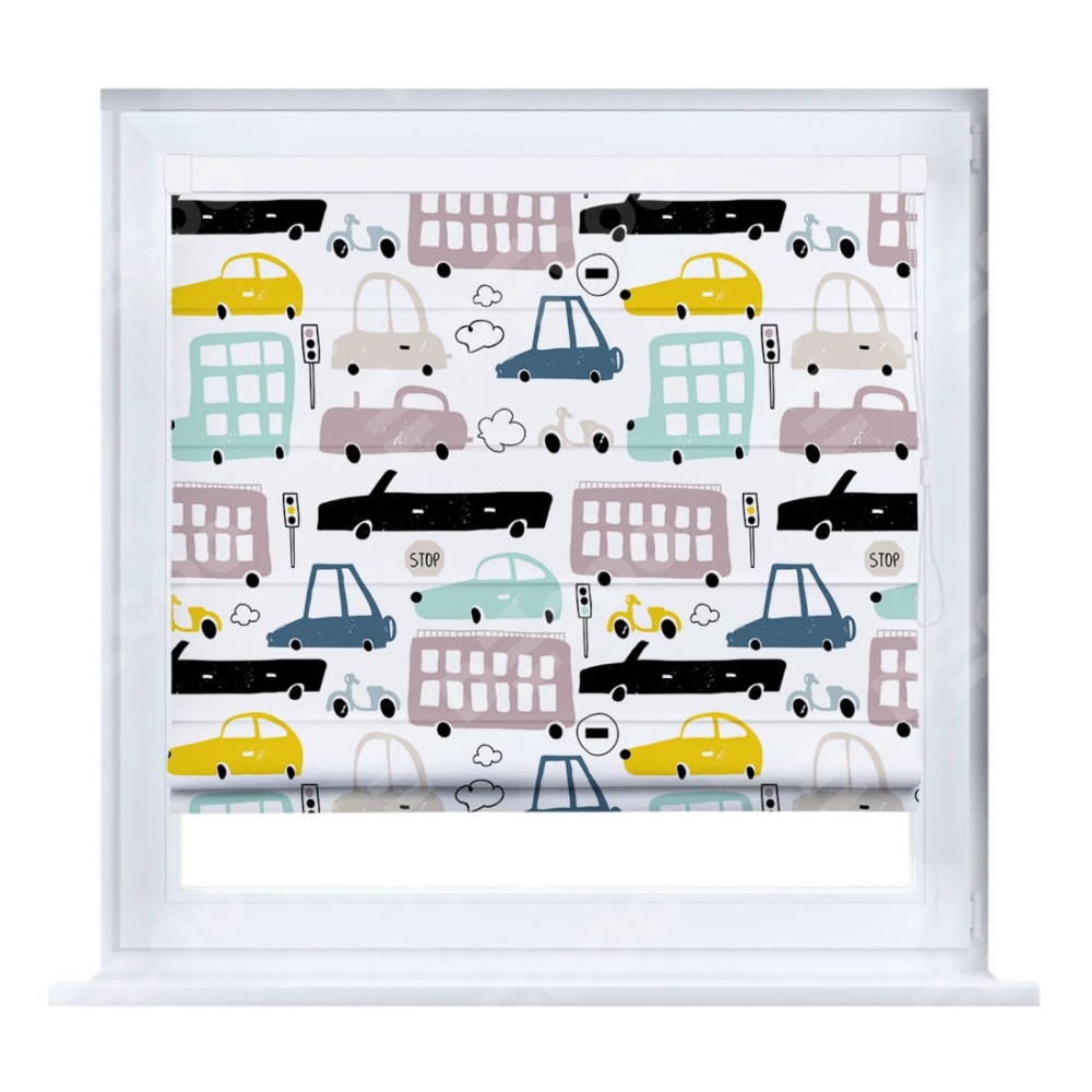 Римская штора производителя «Cortin», устанавливается на створку окна, пошита из ткани блэкаут с нанесением сублимационной печати «Красочный трафик». Штора шьётся по индивидуальным размерам, для данного типа римской шторы возможная ширина от 35 до 150 см., высота до 250 см.