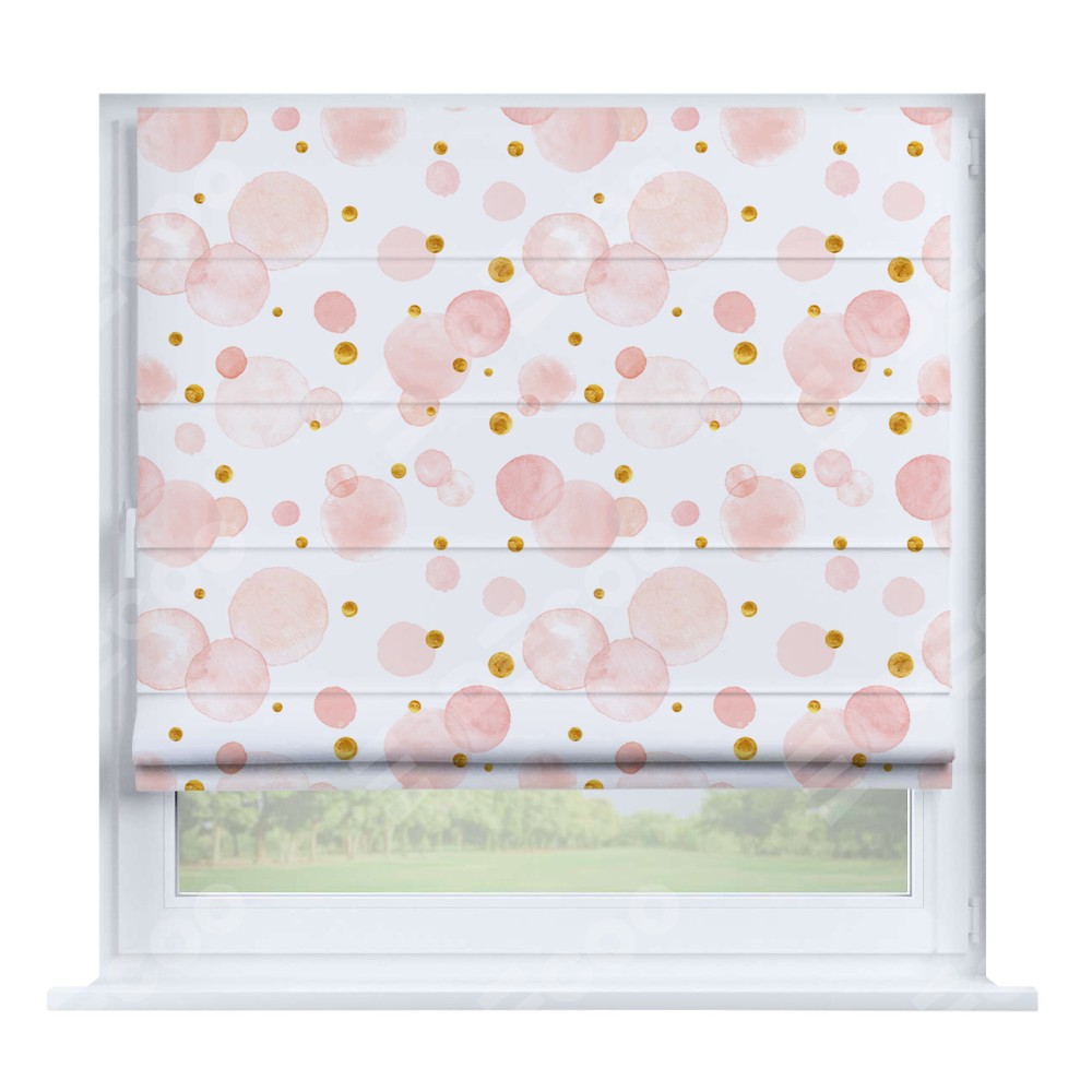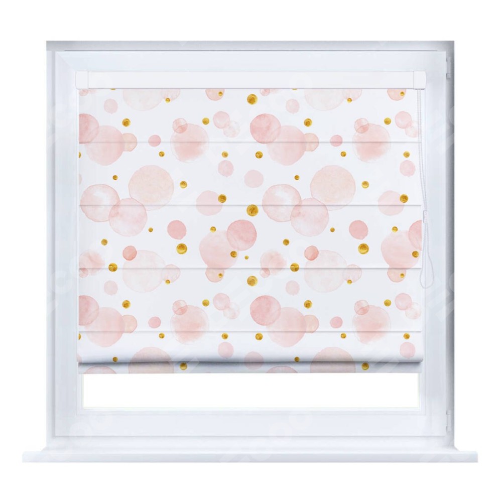 Римская штора «Кортин» на створку «Круги и точки» отлично подойдёт для интерьера: в кухню, на балкон и в детскую.