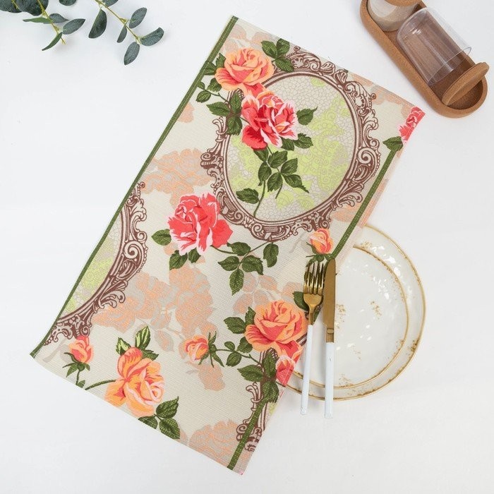 Полотенце 35×60 см, Винтажное зеркало, песочный, вафля, 160 гр/м2, хлопок 100%