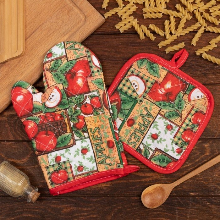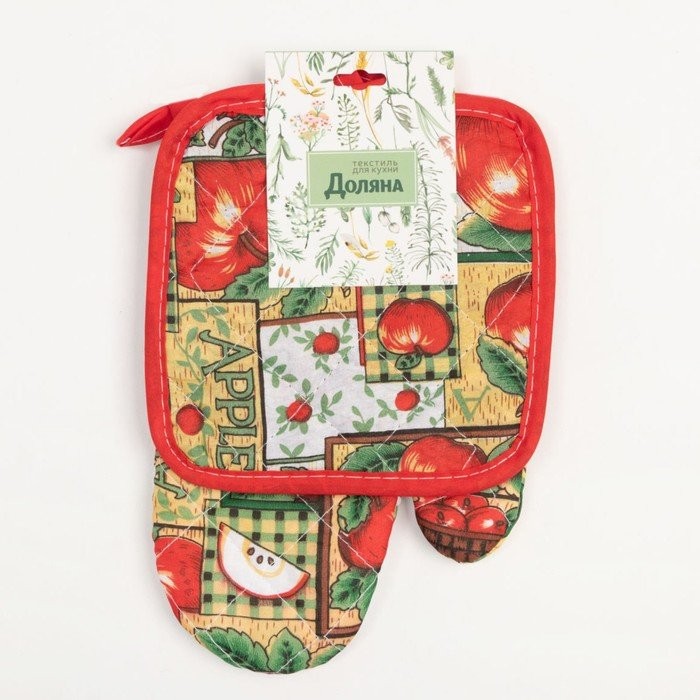Кухонный набор (2 предмета) Доляна «Яблоня», прихватка 16×16 см, рукавица 25*16 см, 100% п/э