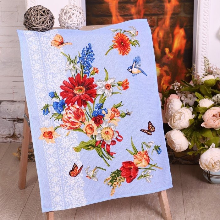 Полотенце 45×60 см, Цветы для любимых (рис.1), вафля, 170 гр/м2, хлопок 100%