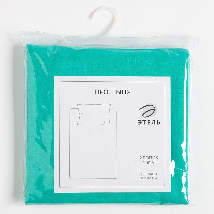 Простыня Этель 200*220 см, цв. бирюзовый, 100% хлопок, бязь, 125 г/м²
