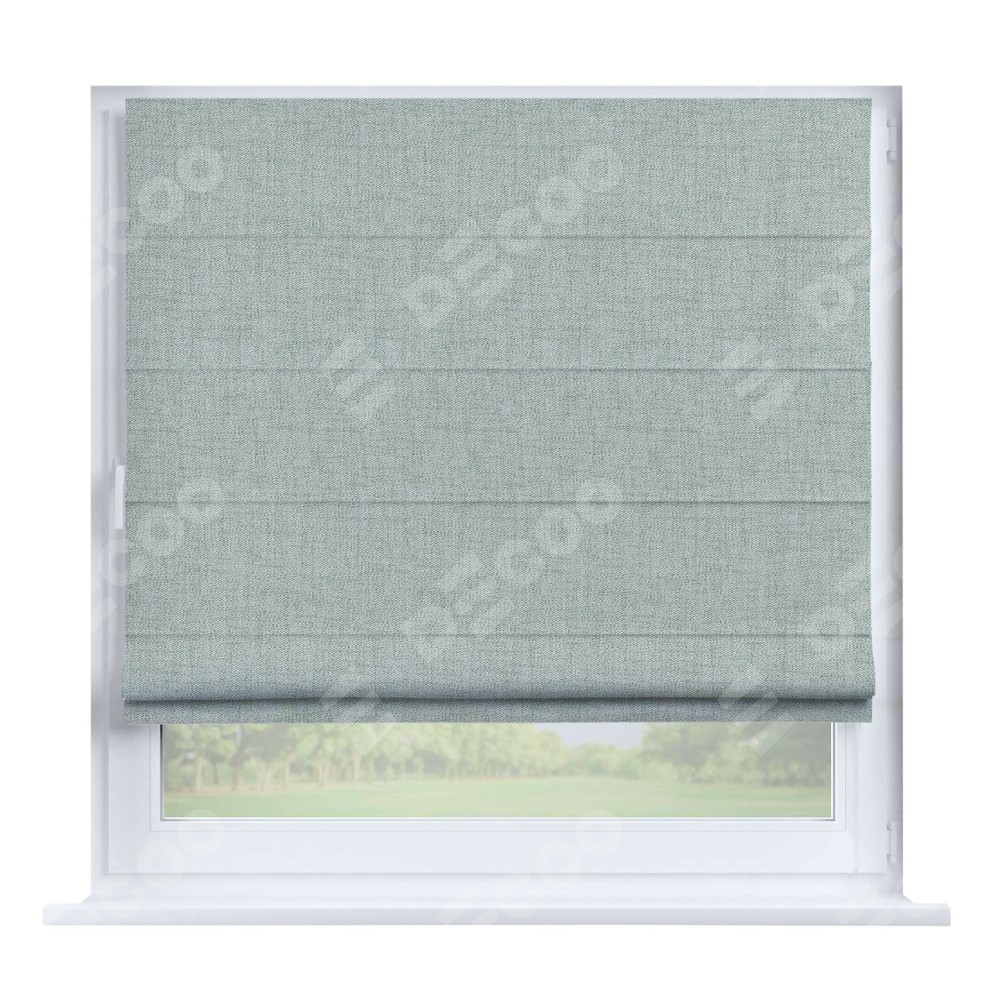 Римская штора производителя «Cortin», устанавливается на створку окна, пошита из ткани рогожка димаут серый, артикул 80426. Штора шьётся по индивидуальным размерам, для данного типа римской шторы возможная ширина от 35 до 150 см., высота до 250 см.