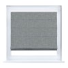Римская штора кассетного типа, производителя «Cortin», устанавливается только на пластиковые окна и прилегает к стеклопакету, пошита из ткани рогожка димаут тёмно-серый, артикул 80418.