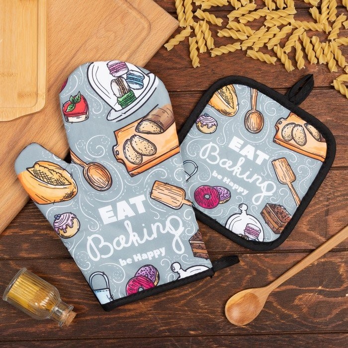 Кухонный набор (2 предмета) Этель Baking, прихватка 17×17 см, варежка 26×16 см, 100% п/э