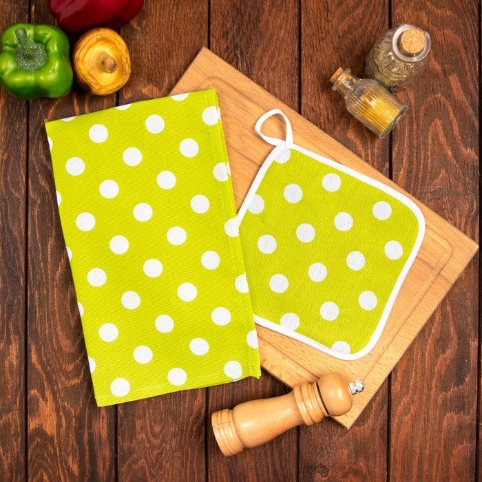 Кухонный набор (2 предмета) «Зелёное яблоко», полотенце 35×60 см, прихватка 19×19 см