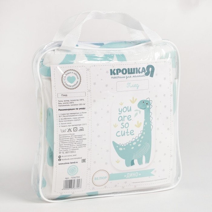 Одеяло-плед Крошка Я «Дино» 90×140 см, велюр, синтепон 100г/м2