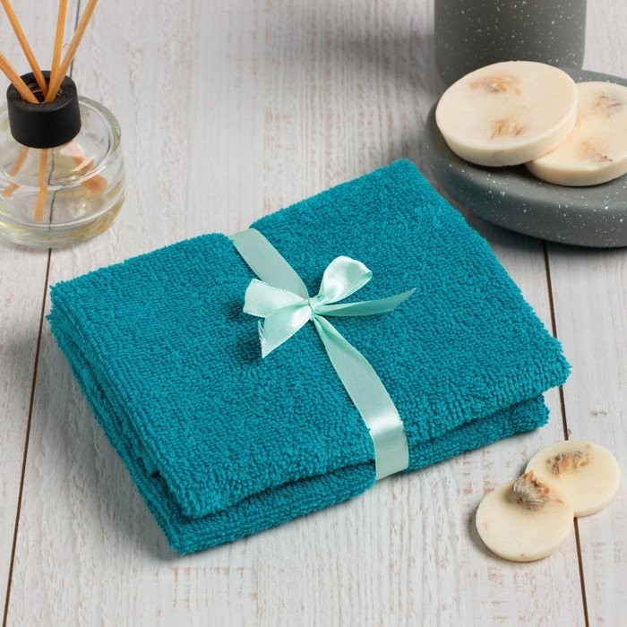Набор махровых декоративных салфеток бирюзовый, 2шт., 340 г/м2, 30×30 см
