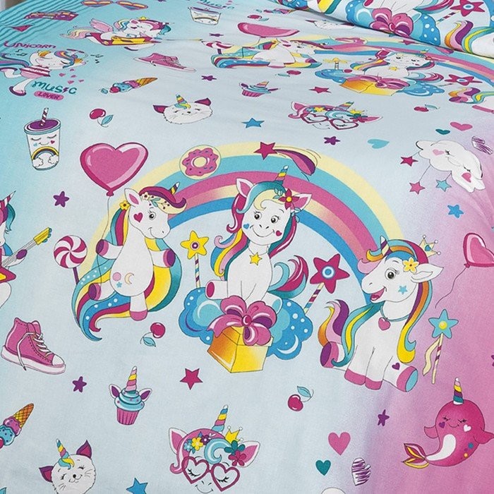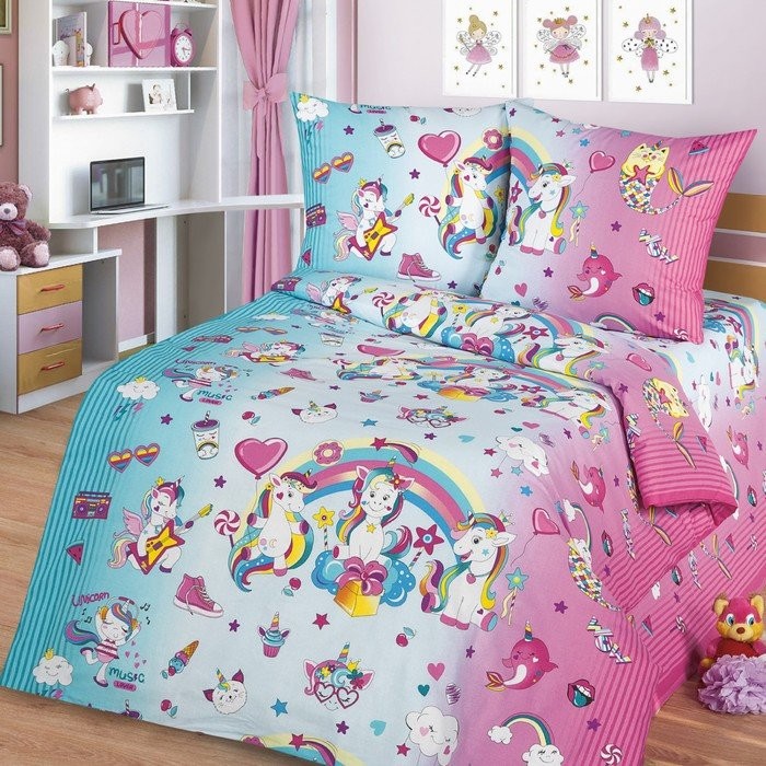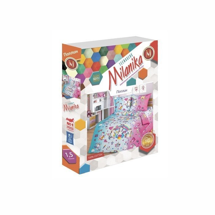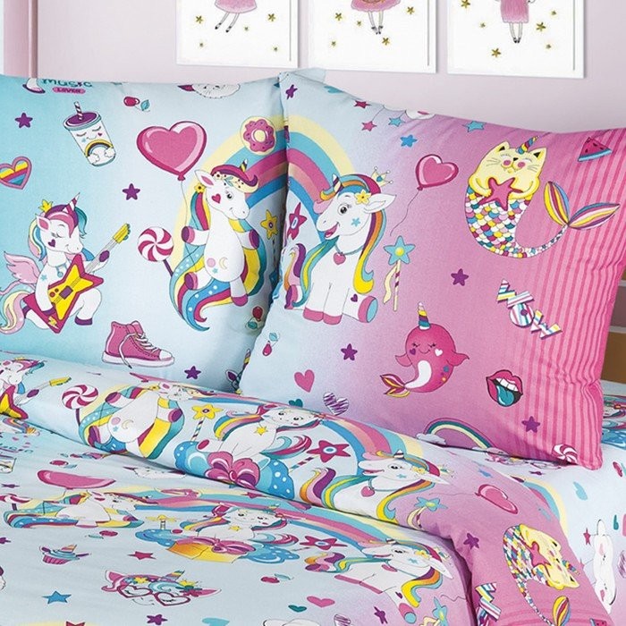 Постельное бельё 1,5сп Миланика Единорожки 145х217см, 150х217см, 70х70см 2 шт, поплин 108г/м, хлопок 100%