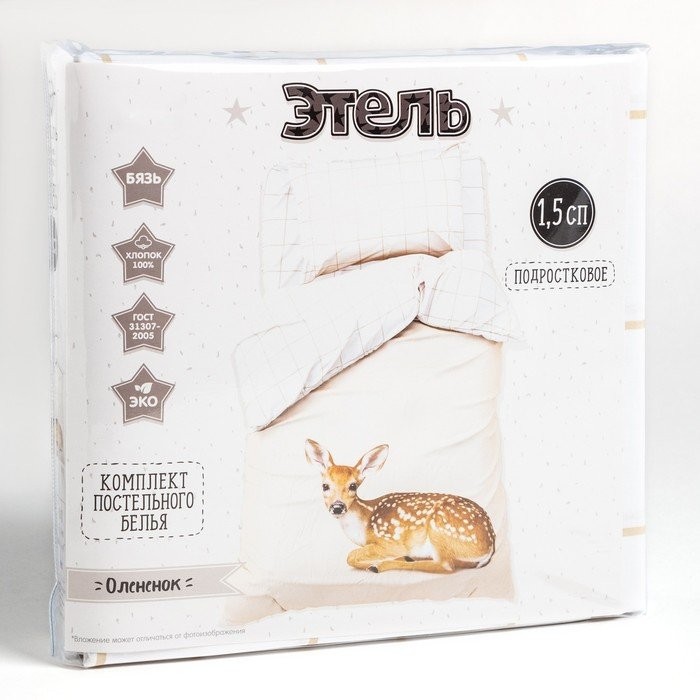 Постельное бельё «Этель: Олененок», 1.5 сп., 143×215 см., 150×214 см., 50×70 см. — 1 шт., 100% хл., бязь