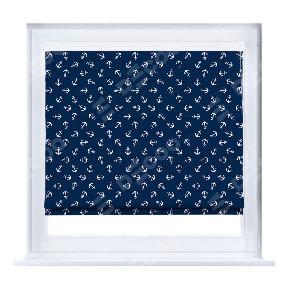 Римская штора производителя «Cortin», устанавливается на створку окна, пошита из ткани блэкаут с нанесением сублимационной печати «Морские якори». Штора шьётся по индивидуальным размерам, для данного типа римской шторы возможная ширина от 35 до 150 см., высота до 250 см.