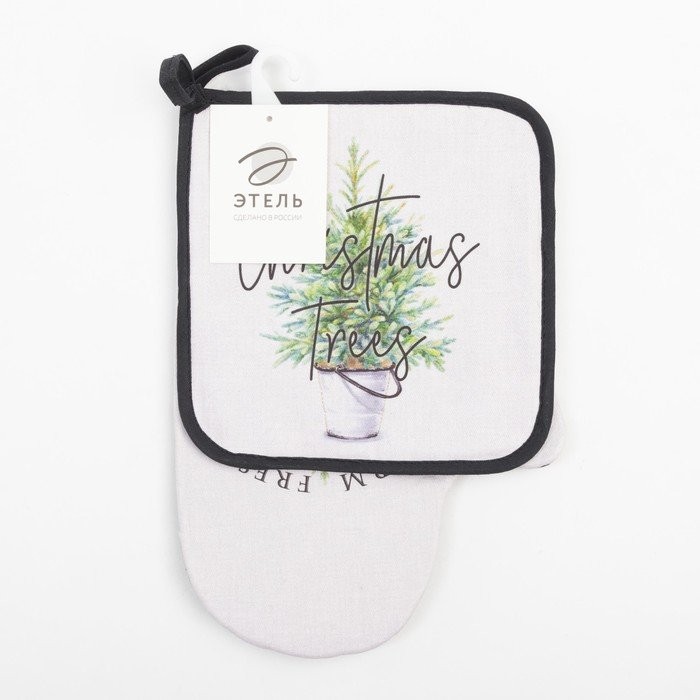 Набор кух. «Christmas trees» варежка-прихватка 20×28 см, прихватка 19×19 см, 100% хл
