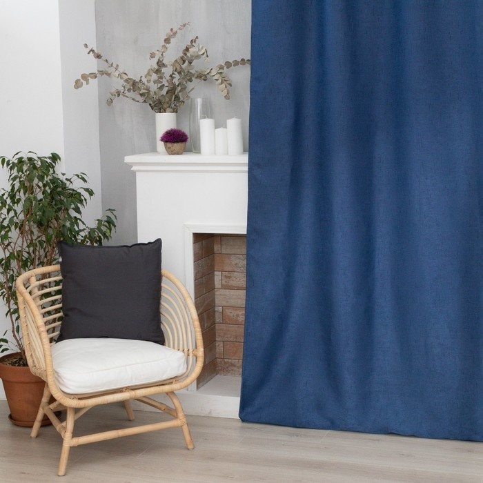 Штора портьерная Этель «Классика», цвет синий, на шторной ленте, 270×300 см, 100% п/э