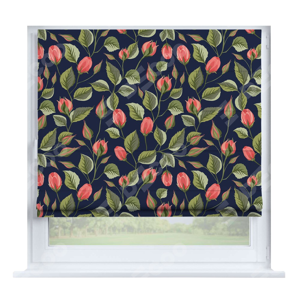 Римская штора производителя «Cortin», устанавливается на створку окна, пошита из ткани блэкаут с нанесением сублимационной печати «Красная роза». Штора шьётся по индивидуальным размерам, для данного типа римской шторы возможная ширина от 35 до 150 см., высота до 250 см.